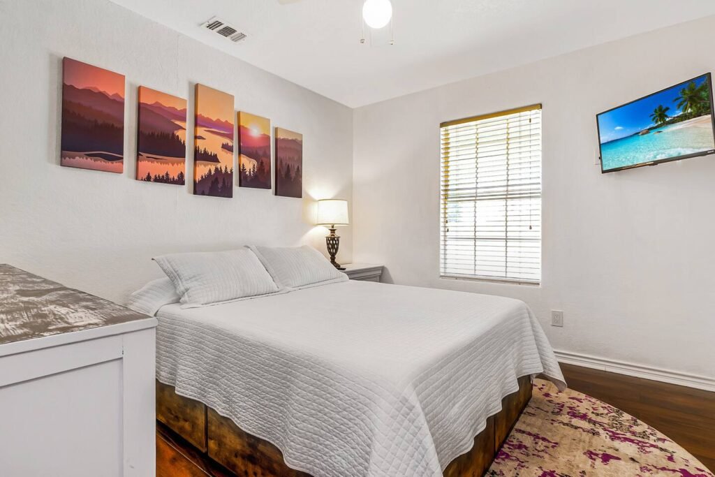 Each bedroom features premium foam mattresses, Smart TVs, high-quality linens, and ceiling fans: